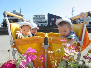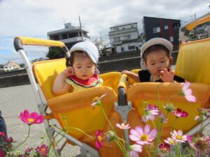左:コスモス見つけたよ。