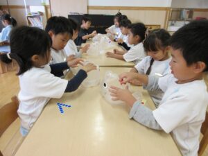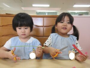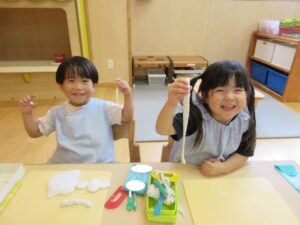 右:長いへびが出来たよ!
