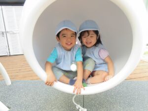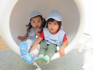 左:大きい遊具の中に入ったよ。