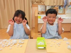 左:お月見団子たくさん作ったよ♪