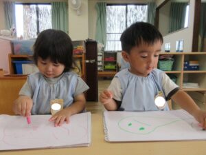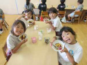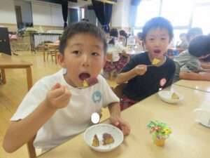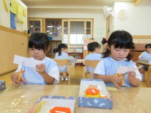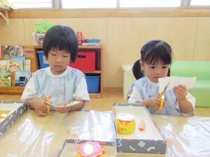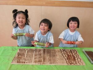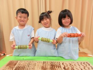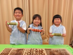 左:ローラーを使ってアイスクリームのコーン作り♫
